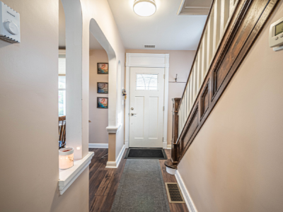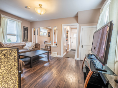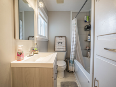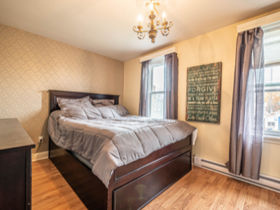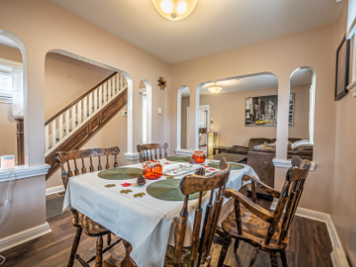 This beautifully renovated 4-bedroom, 2-bathroom home offers a perfect family layout in a convenient location, with shopping and schools nearby. The main floor features newer dark laminate flooring, a large eat-in kitchen with ample storage and counter space, a two-piece bath, convenient laundry room, and a bonus walk-in pantry. The upper level includes four bedrooms and a fully renovated bathroom, with a spacious master bedroom offering plenty of closet space. Enjoy the three-season room at the back of the house — ideal for relaxing or entertaining while overlooking the backyard. The lower level features a finished playroom for kids, and additional highlights include a newer roof, windows, gas furnace, and a double detached garage with loft storage, making this home perfect for modern family living at $1,900 plus utilities.